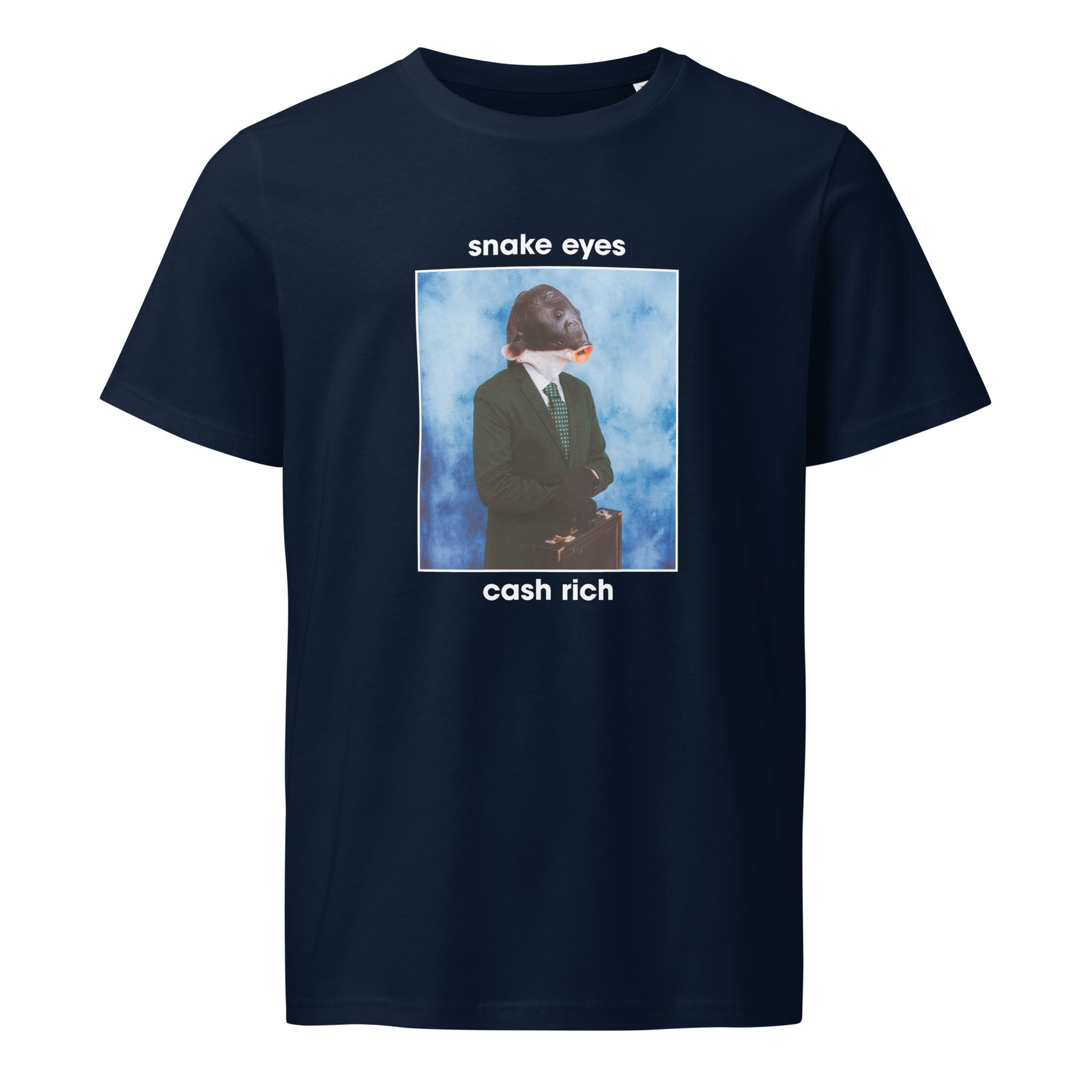 Ah - so you're cash rich, but wardrobe shy. No problem dear friends. We can help you RIGH out with that :D Pick up one of these glorious snake eyes shirts with your order. Go well. This is will be printed on high quality, eco friendly Stanley Stella shirt.